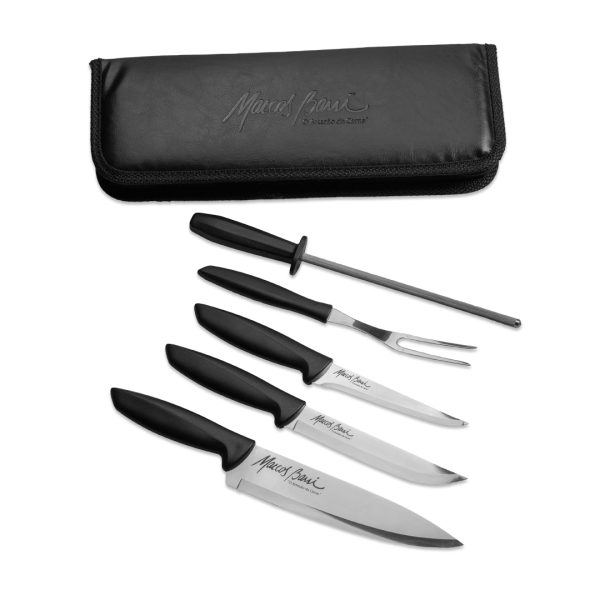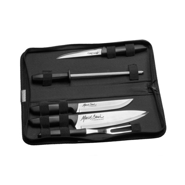 Facas e estojo com personalização da assinatura Marcos Bassi